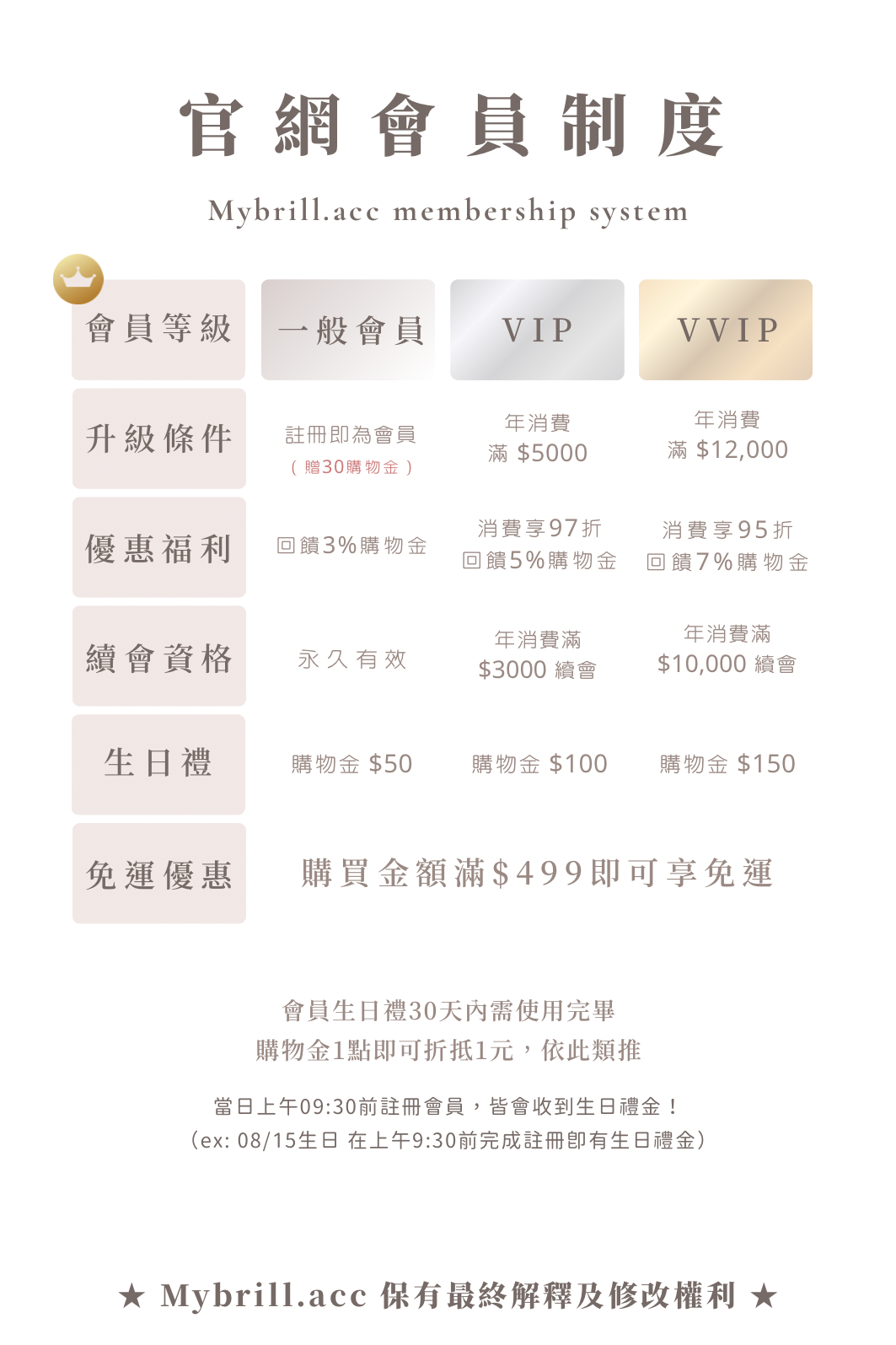 當日上午09:30前註冊會員,皆會收到生日禮金!